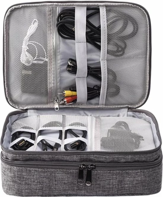 Eindelijk een oplossing, geen kabels meer die in de knoop raken en nooit meer zoeken naar kabels, opladers, sd-kaarten en meer. Altijd alles overzichtelijk opgeborgen en binnen handbereik dankzij de handige elektronica organizer.