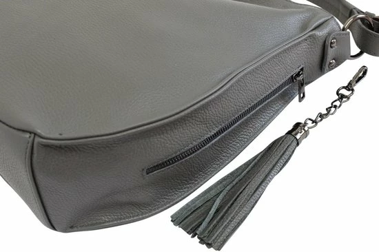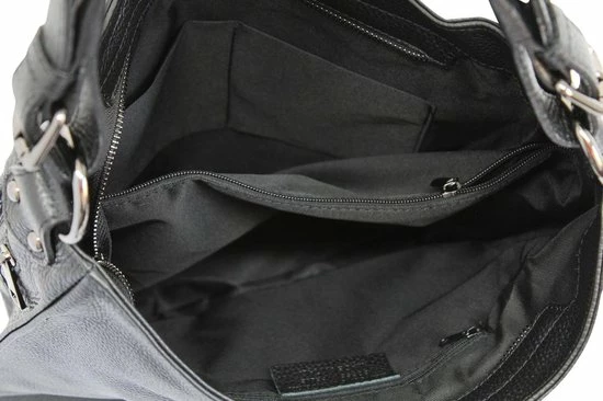 Dames lederen handtas schoudertas, met veel compartimenten handgemaakt in ItaliΓ«. Het hoofdvak wordt geopend met een rits. Binnenin is er een midden compartiment met een rits, een zijvak met een rits en 2 vakken uit stof voor uw kleine dingen zoals sleutel en mobiel. Buiten, 1 ritsvak achterkant en 1 ritsvak aan de linker- en rechterkant. De korte schouderriem is ca. 45 cm lang. De lange schouderriem kan worden versteld tot een maximum van ca. 110 cm. De tas is geschikt voor A4. Afmetingen tas: B 35 cm x H 30 cm x D 10 cm. De hoogte tot de rits is 27 cm. Gewicht 970 gram. De metalen delen zijn zwart-grijs.