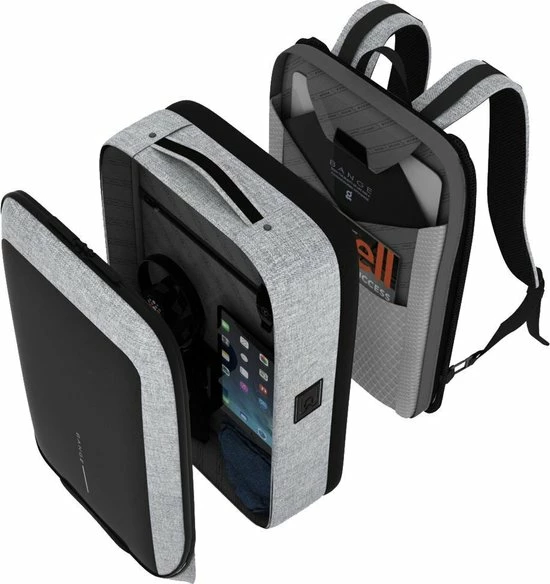 De Bange rugzak beschikt over een hoofdvak waarin veel boeken, kleding of andere voorwerpen kunnen worden opgeborgen. Het gevoerde laptop vak kan probleemloos 15,6 inch laptops bevatten. Kleine binnenzakken bieden plaats aan telefoons, tablets, pennen, sleutels, kaarten en meer.