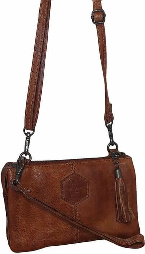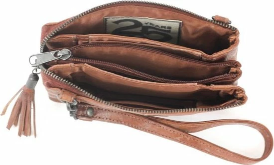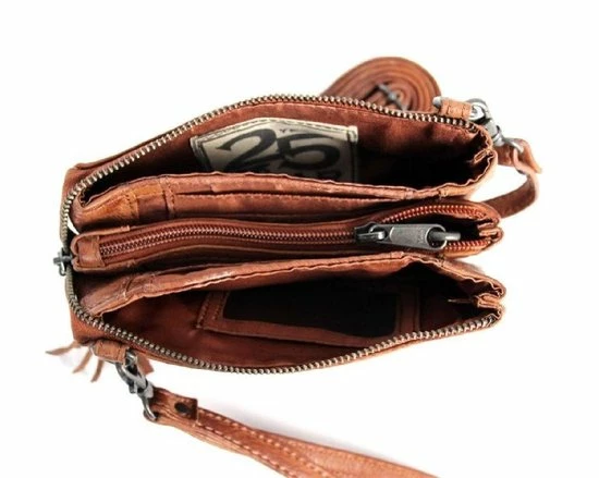 Mooi, klein leren schoudertasje van het merk Beardesign. De binnenzijde bestaat uit 3 vakken waarvan het middelste vak een ritsvak is. Binnenin zitten 6 creditcard-sleufjes voor pasjes. Tasje is afsluitbaar middels een ritsluiting. Bij het tasje wordt een afneembaar polsbandje en een lange afneembare, verstelbare schouderriem meegeleverd. Hierdoor kan je de tas als schoudertas, crossbody, polstas of als clutch dragen.