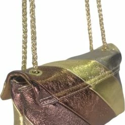 Uitgang 🎉 Merkloos Rainbow Metallic Schoudertas – Echt Leer – Made In Italy – Goud – Bruin 😉