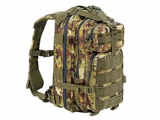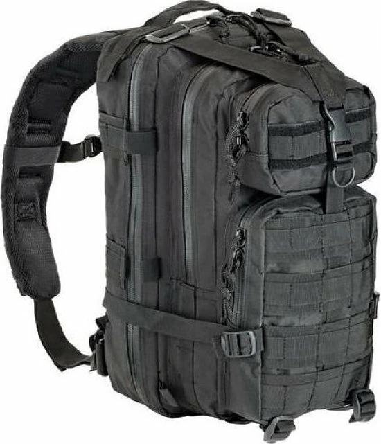 Een compacte legerrugzak gemaakt van stevig en waterafstotend materiaal. De tas draagt zich fijn dankzij het ventilerend mesh-schuim in het rugpand en de verstelbare heup-, borst- en schouderbanden.