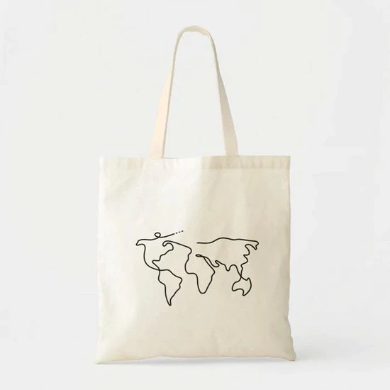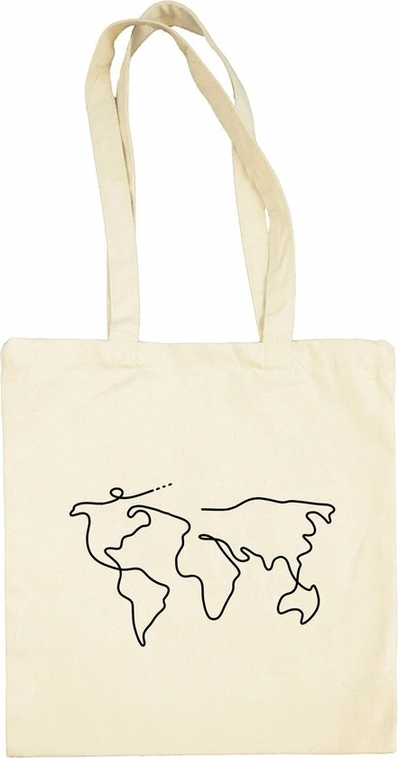 Deze bedrukte World One Line Tote bag is gemaakt van 100% hoogwaardige kwaliteit katoen. Licht beige is de kleur van onze tassen. Onze tassen zijn perfect voor enorm veel activiteiten, bijvoorbeeld om de boodschappen mee te doen, of mee te nemen naar het strand. Naast het feit dat ze enorm leuk zijn om zelf te gebruiken, zijn ze ook perfect om als cadeau te geven! Onze totebags bedrukken wij zelf met het materiaal transfer folie. Katoenen draagtas