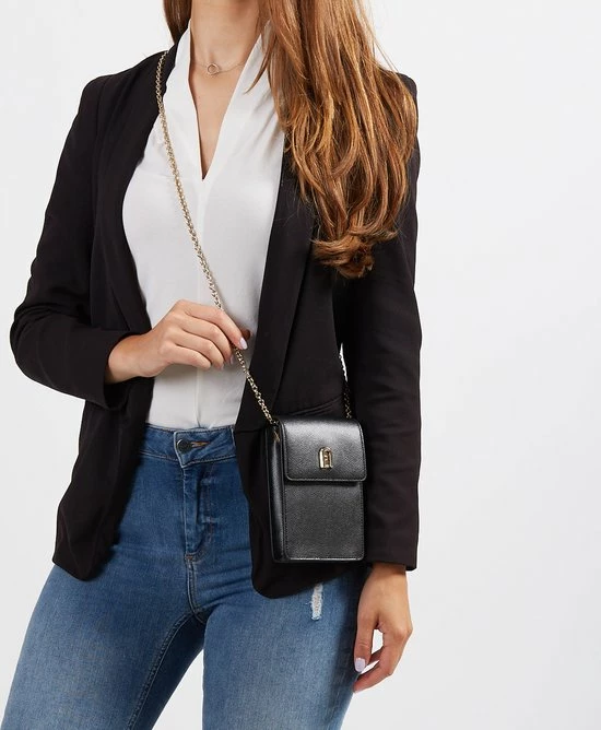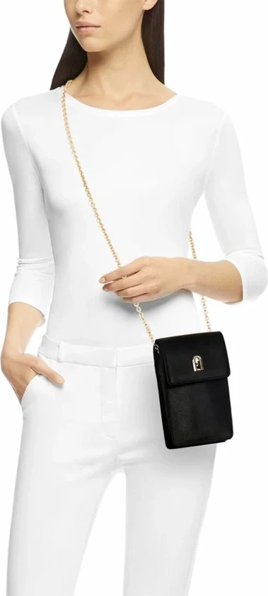 Met deze Furla 1927 Mini Vertical Cross heb jij je smartphone altijd dichtbij. Deze elegante crossbody van Furla is gemaakt van leer en heeft stijlvolle goudkleurige elementen. De tas heeft een klein formaat waardoor je het gemakkelijk mee kunt nemen. Het hoofdvak achter de flap is perfect om jouw telefoon, pasjes houder en sleutels in mee te nemen. De achterkant van de tas heeft ook een klein open vakje om kleine essentials in op te bergen. Met deze tas heb je jouw telefoon altijd makkelijk bij de hand. Wat wil je nog meer?