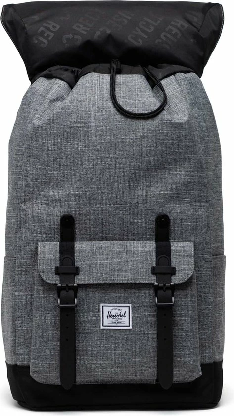 De kenmerkende Herschel Little America, ontworpen voor dagelijkse reizen, in zijn duurzame Eco vorm. De tas met iconische bergbeklimmersstijl is hier uitgevoerd in 100% gerecyclede stoffen en toonaangevende gerecycleerde materialen, van de voering tot het label.