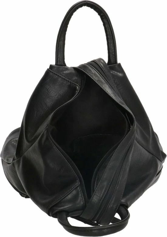 Met deze speelse damesrugtas uit de Caen serie van Enrico Benetti heb je een opvallende tas in handen! De rugzak heeft een leuke asymetrische voorkant en de bovenkant vouwt speels dicht wanneer je de tas op je rug doet. Hierdoor is de tas dus extra veilig gesloten! Deze creatieve tas heeft verstelbare schouderbanden die je ook nog aan elkaar kunt ritsen om de tas bijvoorbeeld over één schouder te dragen. Ook pak je de tas gemakkelijk op aan de handvaten bovenop. De tas heeft een ruim hoofdvak en verschillende (rits)vakken aan binnen- en buitenkant. Zo geef je al je spullen een goed en veilig plekje. Deze tas is handig voor een dagje weg of gewoon elke dag! De damestas is gemaakt van robuust glad imitatieleer, verkrijgbaar in verschillende mooie kleuren.