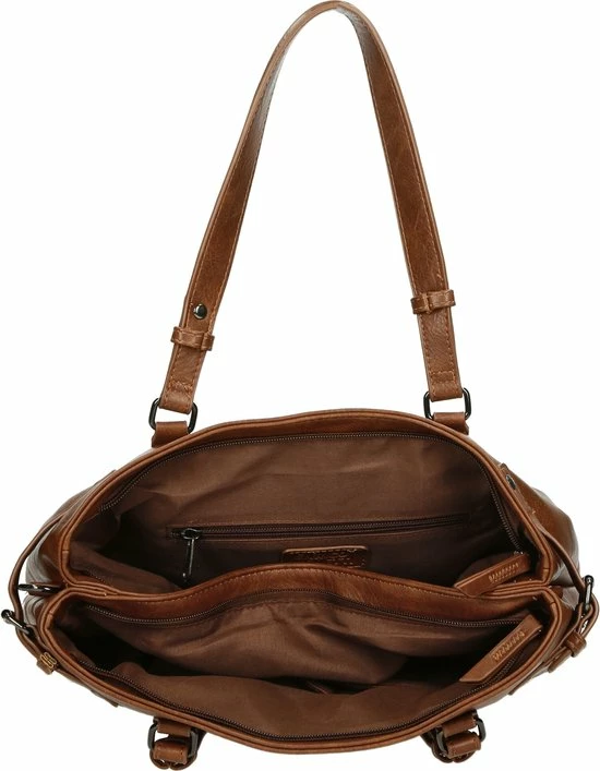 Deze damestas biedt veel ruime en heeft ideaal veel opbergvakken. Zo heeft de tas een voorvak met rits, twee aparte hoofdvakken met ritssluitingen en vanbinnen twee insteekvakken, voor bijvoorbeeld je telefoon, en een ritsvakje. Zo geef je al je spullen een goed plekje! Achterop de tas bevindt zich nog een extra ritsvakje.