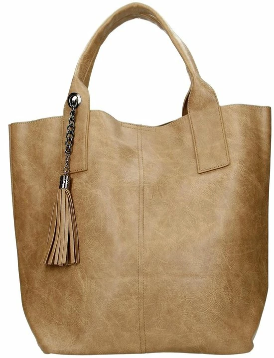 In deze heerlijk ruime handtas uit de serie Caen neem je alles mee wat je op een dag nodig hebt. De tas is gemaakt van hoogwaardig imitatie leer en sluit door middel van een drukker. Voor je waardevolle eigendommen zit er een ritsetui in de tas, vast aan een kettinkje. Aan de andere kant van de ketting hangt een decoratieve kwast. Handtas Caen is praktisch en stijlvol en daarom vast al snel één van jouw favoriete tassen!