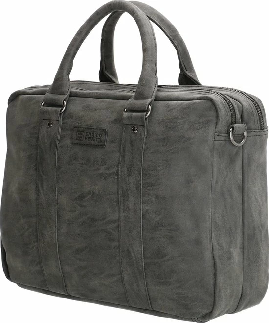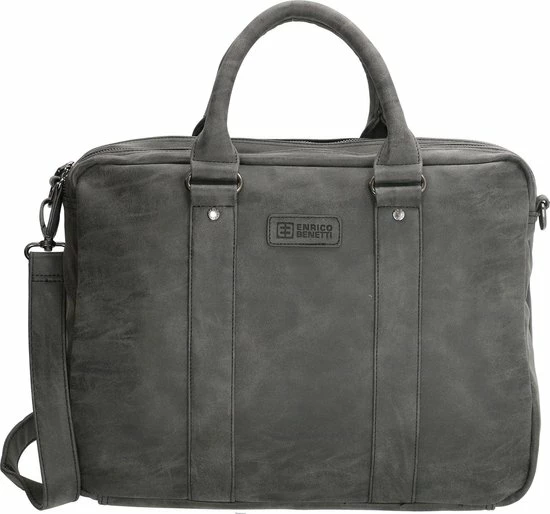 Deze zwarte Enrico Benetti A4 laptop schoudertas uit de serie Madrid is stevig en stoer. De schoudertas is geschikt om je 15.6 inch laptop en een tablet overal veilig mee naar toe te nemen. Voortaan kun je met deze tas alles handig mee nemen. In de twee hoofdvakken van de tas bevind zich een organiser, om pennen en accessoires mee te nemen, twee extra opbergvakken waarvan een met ritssluiting en een gaasvakje om bezettingen in te doen. Aan de achterkant van de tas zit nog een extra ritsvak. Deze schoudertas is gemaakt van kunstleer en heeft een leartherlook uitstraling. Deze mooie tas kan dus aan de hand, maar ook om je schouder gedragen worden. Tevens zorgt een verstevigde achterkant voor extra bescherming en stevigheid van de tas.