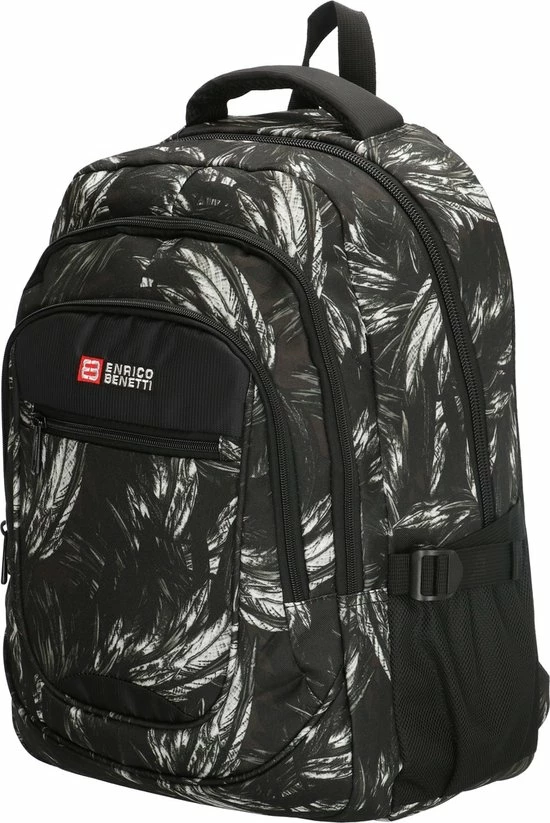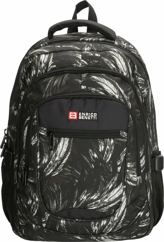 In deze stevige rugzak van Erico Benetti uit de serie Santa Cruz kun je ontzettend veel meenemen. Het sportieve model heeft vier verschillende ritsvakken en een laptopvak van 17,3″. Ook handig is de organizer in het voorvak voor je allerkleinste spulletjes en de steekvakken aan de zijkant. Steel de show met deze stoere (school)tas met verenprint. In verschillende kleuren verkrijgbaar.