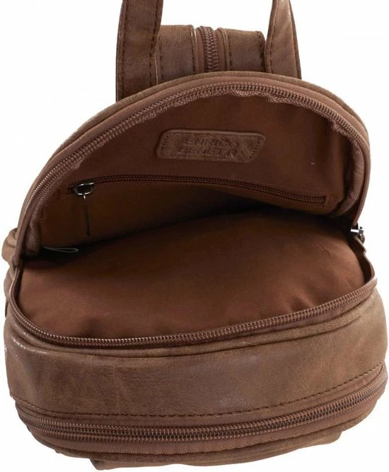 Deze Enrico Benetti rugzak uit de serie Toulouse is klein en trendy. Als je een avondje uit gaat en je persoonlijke bezittingen mee wilt nemen kun je deze eenvoudig opbergen in รฉรฉn van de twee hoofdvakken. Kleine bezittingen kan je opbergen in een extra binnenvak of voorvak. Dit rugzakje is gemaakt van kunstleer en heeft een leatherlook uitstraling. De tas sluit door middel van een ritssluiting. De schouderband is verstelbaar en bied de mogelijkheid om de tas op verschillende lengtes te dragen.