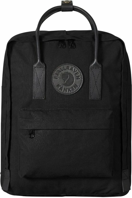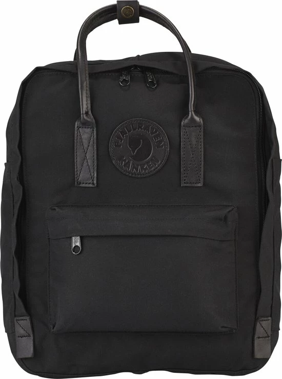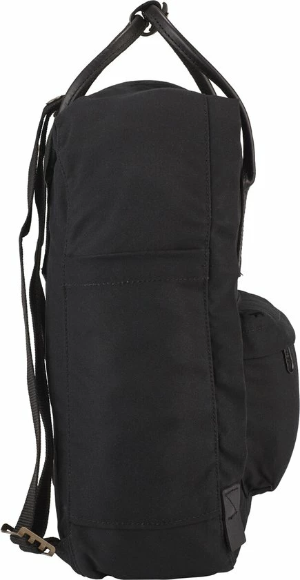 Geheel zwarte uitvoering van Kånken No. 2 van G-1000 HeavyDuty met leren accenten. Praktisch voor dagelijks gebruik met een ruim hoofdvak, een voorvak en een zitmatje.