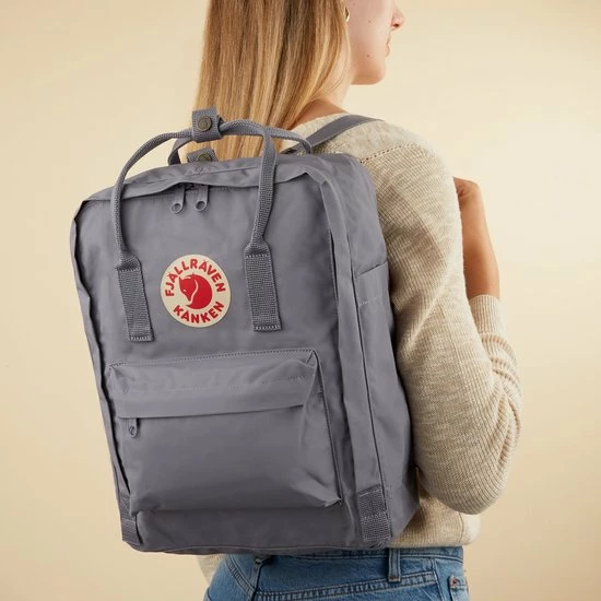Klassieke Kรฅnken rugzak van sterke Vinylon stof met een rits waarmee je het volledige hoofdvak kunt openen. Verwijderbaar zitkussen, klein voorvak, eenvoudige schouderbanden en handgrepen aan de bovenkant.