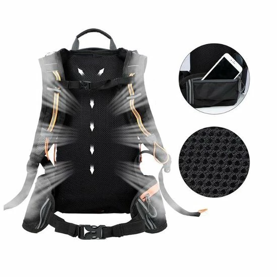 3. Ademend gevoerde achterkant, verstelbare borstband en schouderriem.