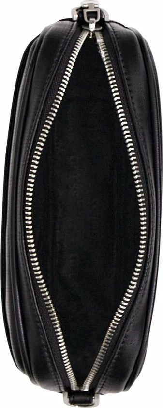 Mooie dames crossbodytas in de kleur zwart uit de nieuwste collectie van Guess. De tas is voorzien van een effen lederlook en beschikt over een zilverkleurig merklogo embleem aan de voorzijde. De tas is makkelijk te combineren met iedere outfit.