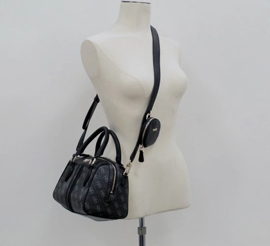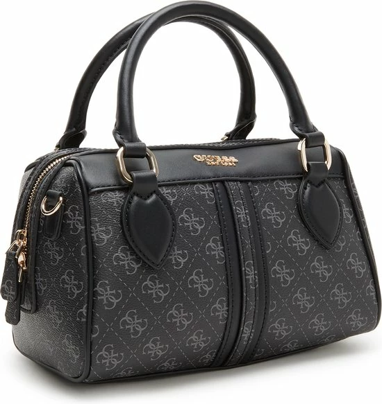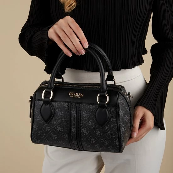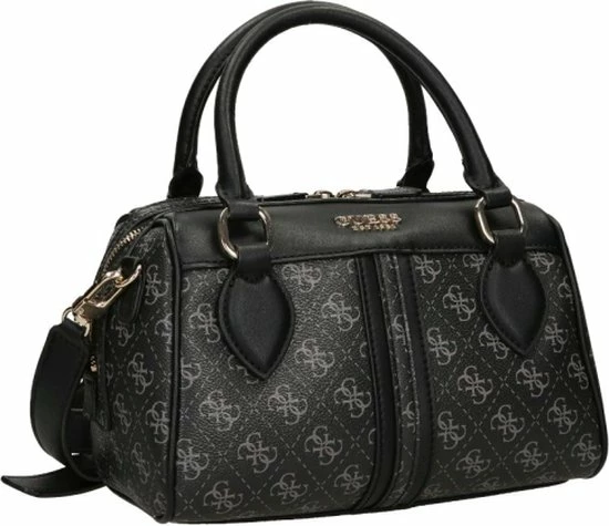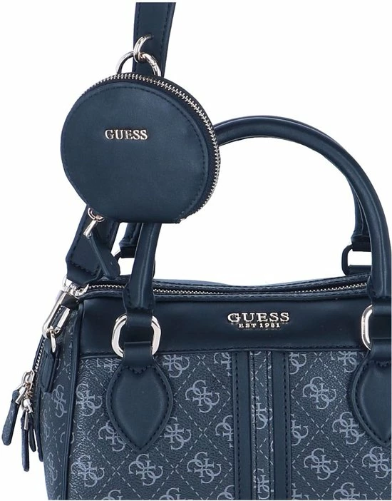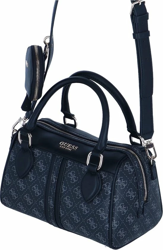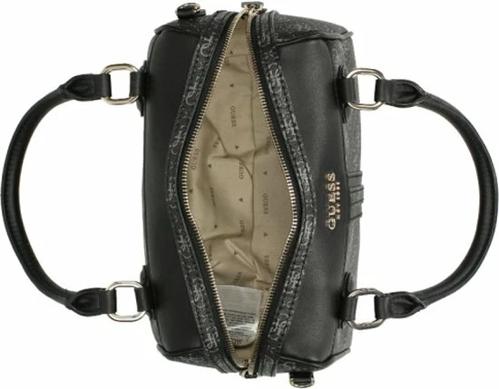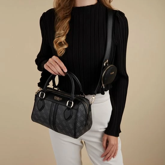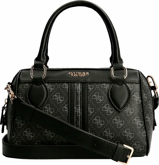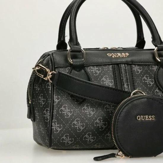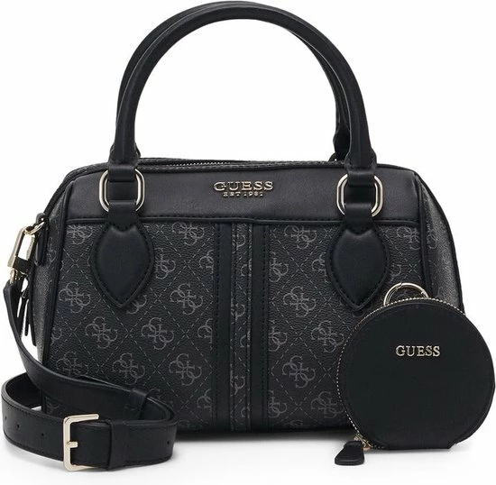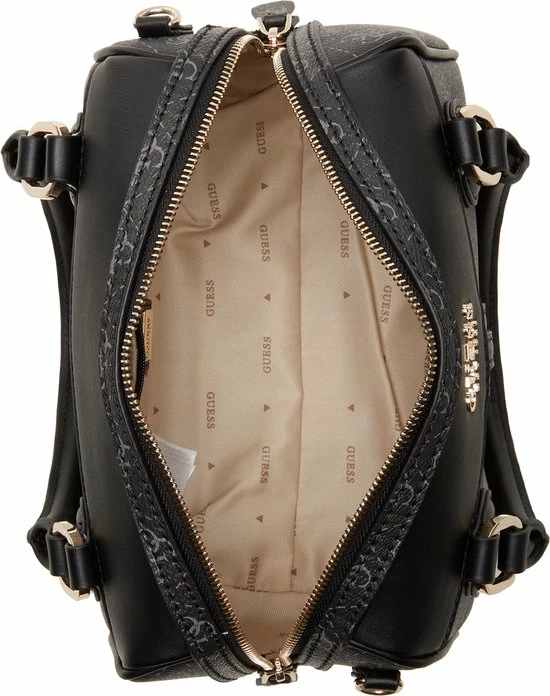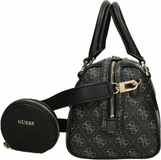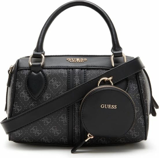 Deze ruime handtas, Noelle van Guess is bedekt in iconische logo print. De tas heeft een afneembare schouderband en twee draaghengsels. Door de licht goudkleurige hardware krijgt de tas een luxe uitstraling. In het midden heeft de tas twee stroken zwart leer wat een extra detail geeft en het gouden logo in het midden mooi uit laat komen. Als kers op de taart komt deze tas met een klein portemonneetje, die je aan de schouderband kan bevestigen.