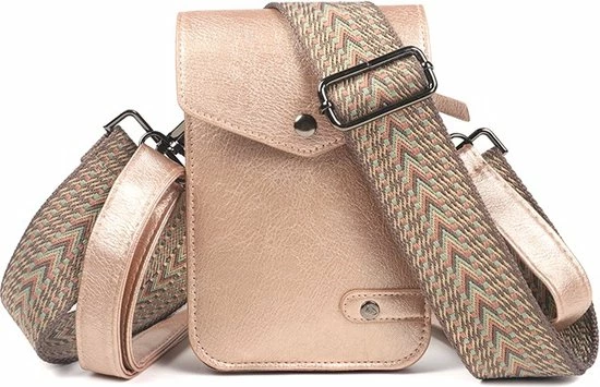 Dokkum is een klassiek telefoon- en schoudertasje van handig formaat van I’m Dutch. Dit populaire telefoontasje is terug in een prachtige glanzende variant.Het telefoontasje heeft van binnen twee insteekvakken. De vakken worden afgesloten door envelopflap met magneetsluiting. Het tasje bevat genoeg ruimte voor verschillende Samsung of Iphone telefoons, maar daarnaast ook plek voor andere benodigdheden als sleutel, geld of pasjes. In de achterkant van het telefoontasje zit een verstopt vakje met zij rits. Daarin kun je je kostbaarheden veilig bewaren. Dit sprankelende tasje past bij elke gelegenheid! Details:Kleur: Rose goldMateriaal: PU materiaal / Veganistisch leer Afmeting: 12cm x 19cmAfmeting koord: Verstelbaar tot 140cm
