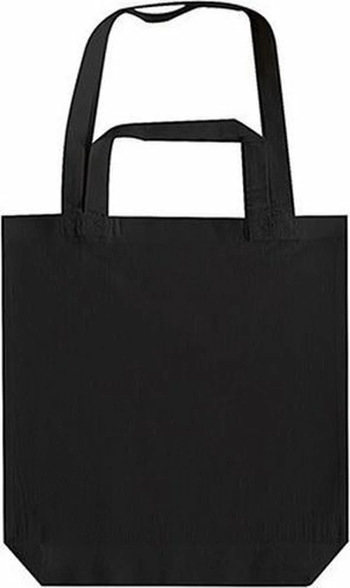 Zwarte canvas tas met dubbel hengsel. De tas heeft 4 handgrepen. 2 korte en 2 lange. Op de handvaten zitten kruisstiksels voor meer stevigheid. Geschikt om te borduren en te bedrukken. Formaat tas: ca. 38 x 42 x 10 cm. Bedrukbaar formaat: ca. 30 x 30 cm. Materiaal: 100% katoen, 140 grams kwaliteit. Bedrukbare katoenen tas/shopper.