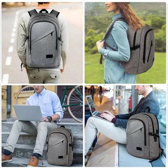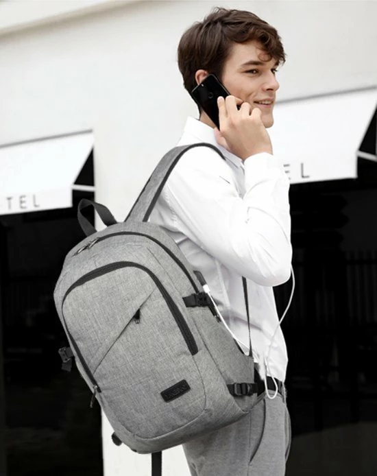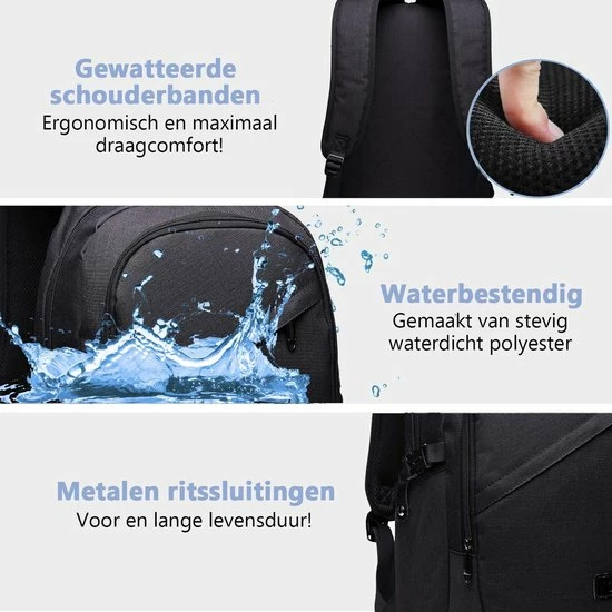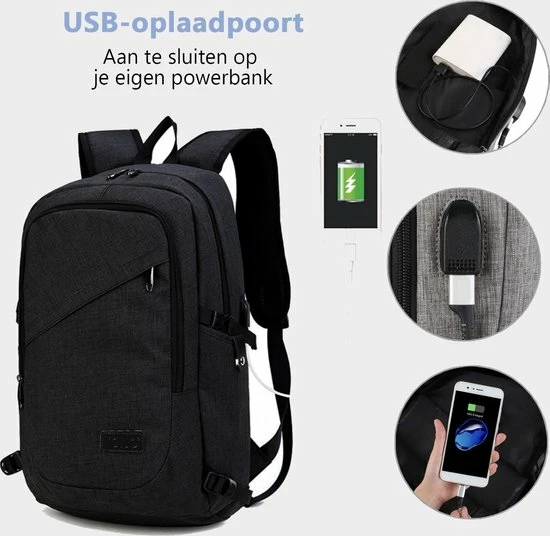 Het rugpaneel is op de belangrijkste draagpunten gewatteerd om uw rug de juiste ondersteuning te bieden en bij te dragen aan een comfortabel gebruik. Daarnaast zijn de brede schouderbanden volledig gewatteerd en eenvoudig verstelbaar. Aan de bovenzijde van de laptop rugzak is een stevig draaghandvat. Daarbovenop heeft de rugzak een USB poort in de tas. Zo kan je gemakkelijk je telefoon opladen of zelfs muziek luisteren.