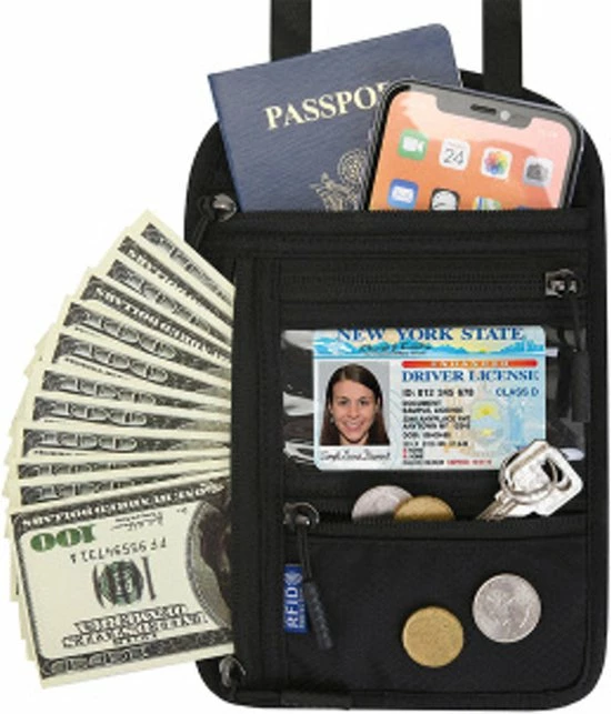Dit nektasje is een onmisbaar item tijdens het reizen of naar bijvoorbeeld een festival. Het anti-diefstal tasje is zo smal dat het onder je kleding kan worden gedragen en verschillende belangrijke spullen zoals geld, pasjes en je paspoort bewaart, zonder dat iemand er bij kan. Bovendien kun je dankzij de 4 verschillende vakken met rits gemakkelijk het overzicht bewaren. Daarnaast beschikt het nektasje over RFID bescherming, waardoor je pasjes ook nog eens beschermd zijn tegen skimmen.