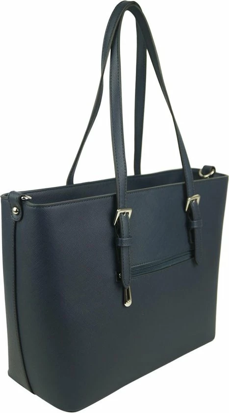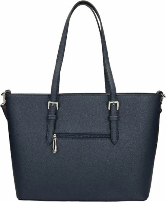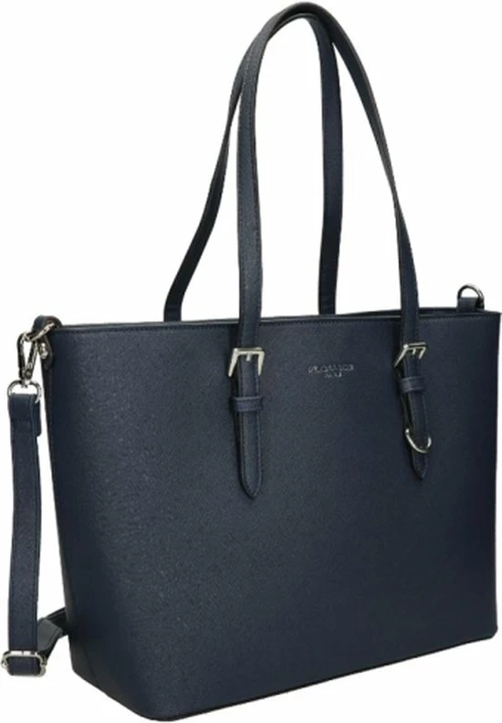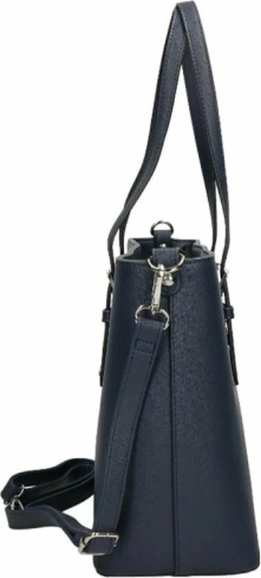 Of je nou gaat winkelen of werken, deze stijlvolle Flora & Co schoudertas is een onmisbare toevoeging aan elke outfit! De tas uit de Saffiano collectie in het blauw heeft een fijne structuur.