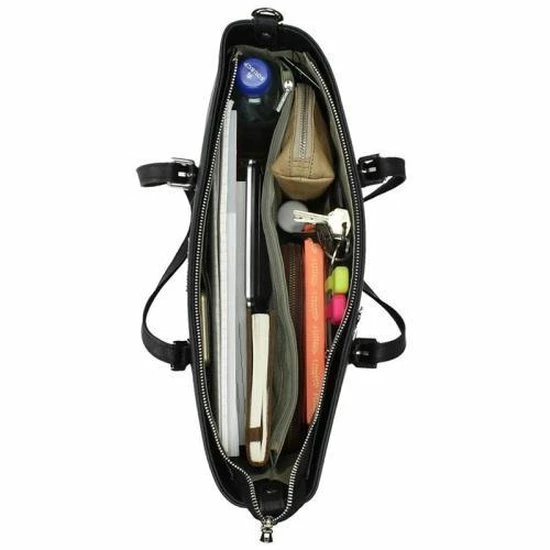 De tas is super ruim en geschikt voor A4-documenten. Ideaal dus om als werk- of schooltas te gebruiken. Aan de binnenkant vind je een ruim hoofdcompartiment dat in twee delen wordt gescheiden door middel van een ritsvak. Met daarbij nog twee steekvakken en en ritsvak om nog extra overzicht in je tas te creëeren.