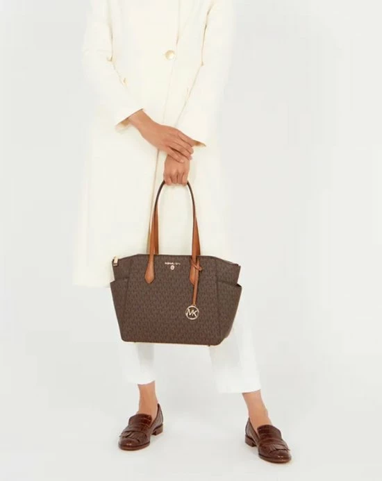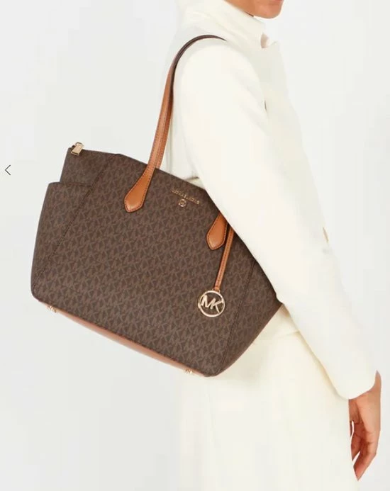 In deze Michael Kors tas uit de Voyager collectie passen sowieso al jouw dagelijkse essentials. En door het logo wat je over de hele tas terug ziet val je ook nog eens op! De tas bestaat uit twee compartimenten en heeft in het midden een divider met ritsvak. In het eerste compartiment vind je zes steekvakken en in de tweede één ritsvak en twee steekvakken. Er is dus ook gedacht aan de kleine spullen. Daarnaast zit er nog een sleutelhaak in dus je hoeft nooit meer te zoeken naar je sleutels! HANDIG OM TE WETEN- Sleutelhaak – 2 compartimenten- 2 ritsvakken- 8 steekvakken