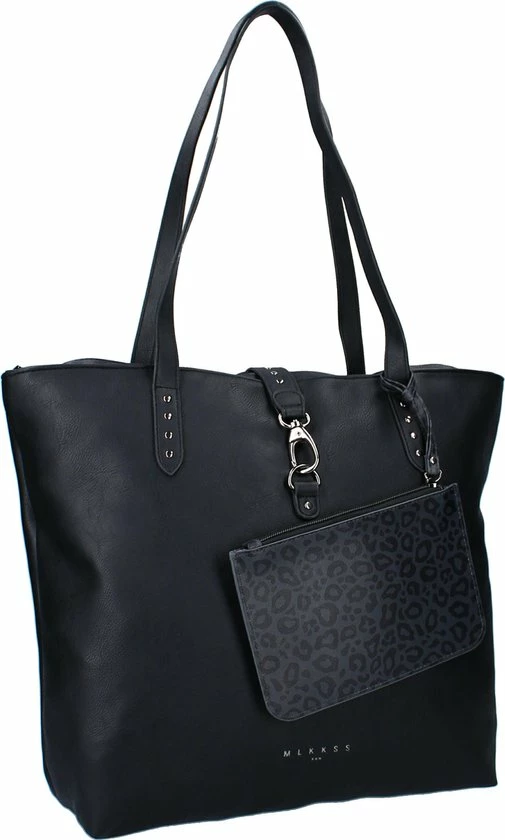 Vraag je je ook weleens af hoe je al die boeken en andere spullen mee naar school moet nemen? Je hebt nogal wat nodig. En als je daarna dan ook nog gaat winkelen met je vriendinnen⦠Dan biedt een shopper uitkomst. Deze shopper is jouw nieuwe soulmate! De mooie, zwarte Milky Kiss shopper van imitatieleer draag over je schouders of in je hand. Op de voorkant staat een mooi voorvakje met panterprint. De tas is af te sluiten met een rits, waardoor je jouw spullen veilig opbergt. Door de zwarte kleur en het stijlvolle design is de shopper bovendien met elke denkbare outfit te combineren.