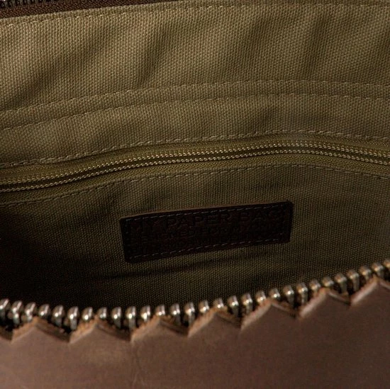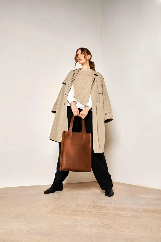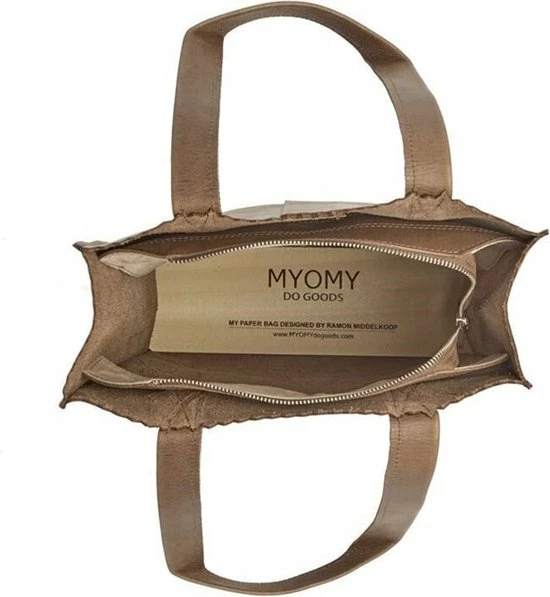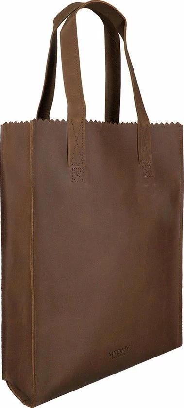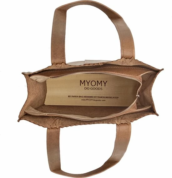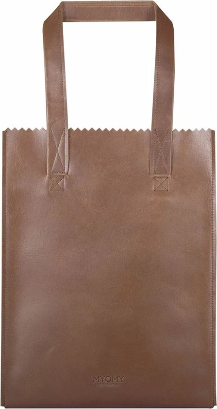 Wat is deze leren tas toch stoer! Hij is van het duurzame merk MYOMY en komt uit de Hunter collectie. Het kartelrandje aan de bovenkant is kenmerkend voor deze collectie, wat dit model gelijk een opvallende look geeft. De binnenkant van dit model in de kleur bruin bestaat uit een ruim compartiment met twee grote ritsvakken en drie steekvakken voor mobiel een mobiele telefoon. De tas wordt geleverd met een houten plankje die je onderin de tas kunt bevestigen. Dit plankje zorgt ervoor dat de tas mooi rechtop blijft staan als je hem neerzet. Handig, zo ziet hij er altijd perfect uit! Alles van MYOMY worden met de hand gemaakt in de fairtrade gecertificeerde fabriek en daarmee duurzaam geproduceerd. Door een MYOMY tas te kopen draag jij dus ook gelijk een steentje bij aan de wereld!