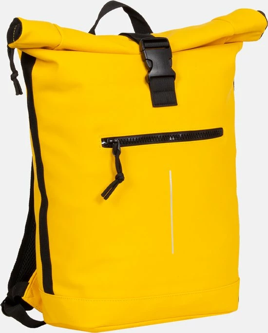 Stoere waterafstotende laptop rugzak uit de Mart serie van New Rebels. De rugzak is gemaakt van tarpaulin. Dit waterafstotende materiaal zorgt er voor dat de tas tegen een stootje kan en jouw eigendommen droog blijven tijdens verschillende weersomstandigheden. De reflectiestreep op de voorkant zorgt er voor dat je goed zichtbaar bent tijdens donkere dagen. Het ruime hoofdvak is afsluitbaar middels een ritssluiting en TT (schuif/klik-sluiting) en is oprolbaar ofwel qua volume wat te vergroten danwel te verkleinen. Binnenin zit een extra ritsvakje en een gewatteerd laptopvak van 37 x 27 x 4 cm geschikt voor een 15,5 inch laptop. Op de voorzijde van de tas zit een ritsvak waarin je spullen kwijt kunt die je snel bij de hand wilt hebben. Het rugpand en de verstelbare schouderbanden zijn gewatteerd voor optimaal draagcomfort. Met de lus aan de bovenkant kan de tas makkelijk opgepakt worden of in de hand gedragen worden.