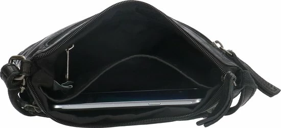 Mooie kleine, leren schoudertas uit de Paint Rock serie van Old West. Het hoofdvak is met een rits afsluitbaar en heeft binnenin een insteekvakje en een ritsvakje. De tas is subtiel afgewerkt met het Old West logo. Op de voorkant van de tas zitten 2 ritsvakken en ook op de achterkant van de tas zit een ritsvak. De tas kan over de schouder maar ook als crossbodytas schuin over het lichaam gedragen worden.