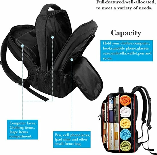 - VEEL ZAKKEN & MULTI-COMPARTIMENT: Zak meer dan 15, het hoofdvak van de pc schoolrugzak kan 15,6 inch laptop iPad boeken bevatten, mappen, mappen, kleding, etui en schoolbenodigdheden. Voorvak met vakken voor sleutelhangerpennen voor mobiele telefoons enz. Maak accessoires georganiseerd en gemakkelijk te vinden. Speciale rugzak voor forensen heren dames jongens meisjes.