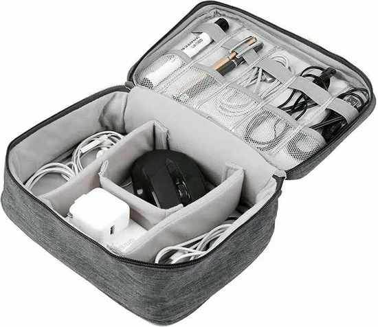 Eindelijk een oplossing, geen kabels meer die in de knoop raken en nooit meer zoeken naar kabels, opladers, sd-kaarten, oordopjes om muziek te luisteren en meer. Altijd alles overzichtelijk opgeborgen en binnen handbereik dankzij deze handige elektronica organizer van QY.