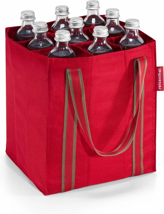De reisenthel bottelbag pakt per liter met een maximum aan comfort. Deze flessentas biedt plaats aan 9 flessen van 1 liter, ideaal tijdens het boodschappen doen. Door het hoogwaardige polyesterweefsel is de bottlebag sterk genoeg om deze zware last te dragen. Maar wil je een opgeruimd keukenkastje dan staat de bottlebag ook voor je klaar, lege flessen erin en hup naar de glasbak.