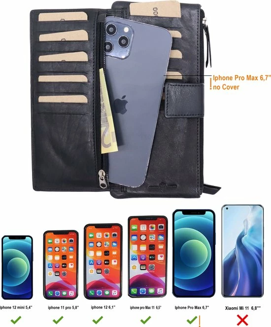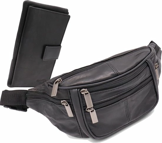 - U ontvang 1 x leren heuptas zwart en 1 x leren portemonnee