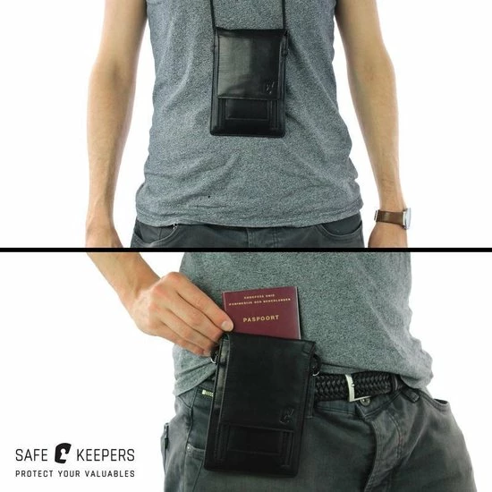 De nektas van Safekeepers biedt genoeg ruimte om de grote nieuwste mobieltjes in kwijt te kunnen. Zo ontworpen dat er ook nog pasjes , muntgeld, ov kaart en paspoort mee kan. Ideaal als reis portemonnee . Gemaakt van Zacht rundleer. Het leer voelt heerlijk zacht aan op de huid als je het nektasje onder de kleding wilt dragen. Het tasje is universeel en geschikt voor dames en heren. Even genoeg van het nektasje om je nek? Schuif hem dan naadloos aan je riem en gebruik de Safekeepers als riemtasje.