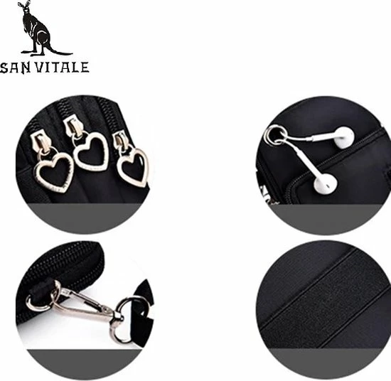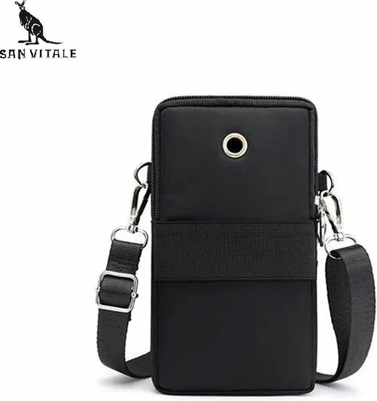 – Ook te dragen om de arm, d.m.v. een elastieken band aan de achterkant van het tasje