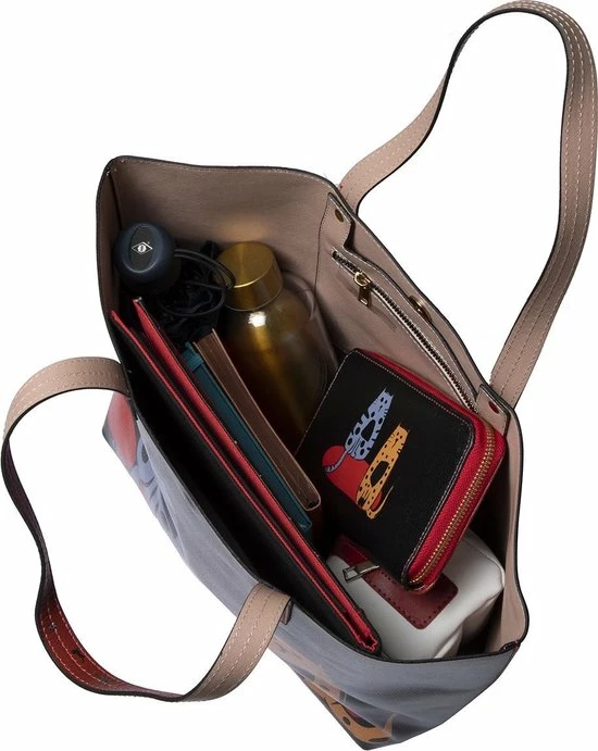 Schoudertas ontworpen door Z. Pak met het ontwerp “Cats of the City”. Deze dames handtas / schoudertas voelt zacht aan en is niet te zwaar. Aan de binnenkant zit een ritsvak waar je spulletjes in kwijt kunt. Naast dat de Cats dames tas waterbestendig is, heeft het een zeer uniek design dat gebaseerd is op het kunstwerk “Cats of the City”. Deze handtas is dus een must voor de trendy vrouwen of wanneer je gewoon heel erg gek bent op katten!