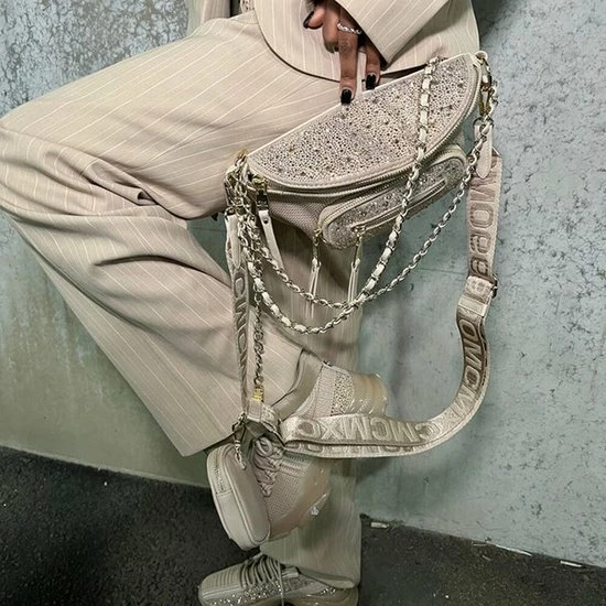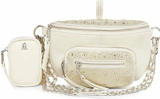 Steve Madden Bmaxima dames heuptas. Maak je look af met deze handige en trend heuptas van Steve Madden. Deze fancy tas is gemaakt van synthetisch materiaal en voorzien van strass steentjes. Voorzien van een ritssluiting. Met een ritsvak aan de voor en binnenkant. De fashionable tas valt op verschillende manieren te dragen. Afmetingen: 16 x 25 x 9 cm.