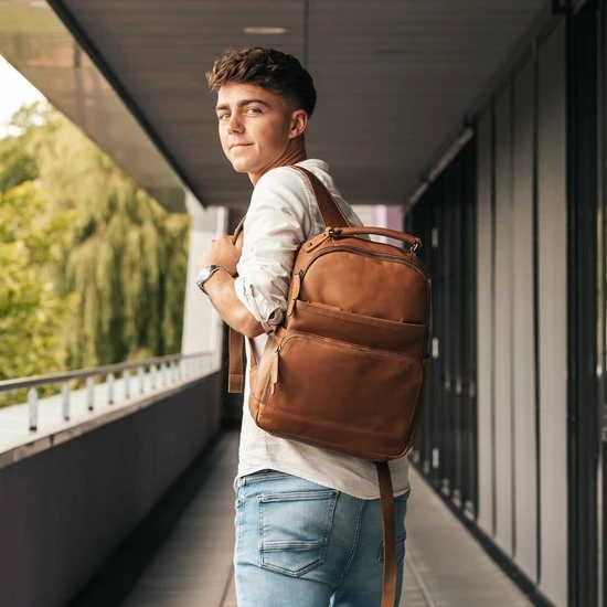 Ben je op zoek naar een gave en praktische rugzak voor dagelijks gebruik? Dan is deze leren rugzak Austin echt iets voor jou! De stijlvolle details maken de look helemaal af en door de vele opbergvakken is deze tas multifunctioneel. Perfect om jouw spullen overzichtelijk in op te bergen!Deze leren rugzak Austin is daarom geschikt voor dagelijks gebruik, een school- of kantoordag en vakantie. De belangrijkste features van deze rugzak: * Verstevigd vak voor een 14 inch laptop * Opbergvak voor een 12.9 inch tablet (25 cm breed en 36 cm hoog). * Verstelbare – en gevoerde schouderbanden * Verstevigd rugpand voor extra draagcomfort Het hoofdvak is voorzien van een verstevigd vak om een tablet of compacte notebook tot 12.9 inch in op te bergen. Verder bevat het hoofdvak een organizer (voor het opbergen van pennen en creditcards) en een opbergvak met ritssluiting. Aan de achterkant van de tas bevindt zich het laptopvak, geschikt voor laptops t/m 14 inch. Verder is deze leren rugzak voorzien van drie extra opbergvakken, een houder voor een drinkfles en een trolleyband. Dit maakt de tas ook erg geschikt om mee te nemen op reis! Deze tas is gemaakt van hoogwaardig Wax Pull-up leer. Wax pull-up leer wordt gekenmerkt door een zachte en soepele structuur. Eventuele gebruikssporen kun je makkelijk wegwrijven door de speciale wax behandeling die de tas heeft ondergaan. Zo gaat jouw tas jarenlang mee. De leren rugzak Austin onderhoud je gemakkelijk met onze leder wax: dit is een reinigings- en onderhoudsmiddel in รฉรฉn! Ook berg je de tas veilig en stofvrij op in onze meegeleverde dustbag. Met onze leren tassen en accessoires willen we ervoor zorgen dat jouw zelfvertrouwen een boost krijgt. Zie er beter uit, voel je beter, presteer beter. Sta stil bij jouw successen, groot of klein, Honour Your Success.