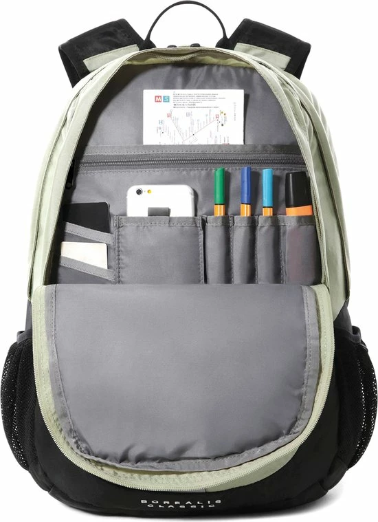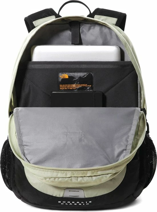 - Laptopvak: binnenin het grote vak is ruimte voor een waterzak, of voor een laptop van maximaal 15″