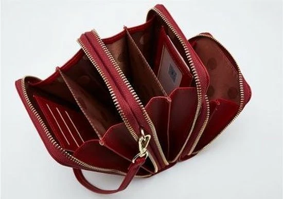De tas is verdeeld in 3 compartimenten die allen zijn gesloten met een rits. In de vakjes zitten speciale ruimtes voor de pasjes. Er zit een koord bij de tas, waardoor je hem kunt omhangen. Deze kan ook versteld of er afgehaald worden.