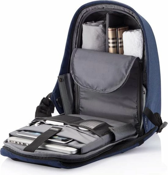 XD Design Bobby Pro anti diefstal rugzak blauw. Een 15,6” laptop, een tablet en alle andere belangrijke eigendommen zijn veiliger dan ooit mee te nemen. Er kunnen op geen enkele manier ongewenste vingers in de rugzak komen dankzij de vervaardiging uit hoogwaardig, snijbestendig polyester. Met de Bobby Pro Anti-diefstal Rugzak ga je vanaf nu onbezorgd de deur uit. Met deze tas bent u een dief altijd te slim af. De tas van het merk XD Design is gemaakt van een snijvast materiaal, hierdoor kan de tas niet opengesneden worden. Dankzij de verborgen ritsen kan de tas niet opgemaakt kan worden door zakkenrollers als u de tas draagt. Het ruime hoofdvak met ritssluiting is voorzien van interne verdelers en een middenlaag zodat de spullen georganiseerd mee genomen kunnen worden. De schouderbanden beschikken over een fidlock-systeem, zodat je je telefoon of koffiebeker altijd bij de hand hebt. Ga veilig op pad met deze Bobby Pro Anti-diefstal Rugzak! Aan de buitenzijde heeft de tas verschillende verborgen vakken, wat het woon-werk verkeer comfortabel maakt. In het donker is de rugzak ook goed zichtbaar dankzij de reflecterende strepen. De rugzak is comfortabel te dragen dankzij de perfecte aansluiting op het lichaam. Kenmerken:โข Anti-diefstalontwerp met verborgen ritssluiting en geen toegang aan de voorzijdeโข Verborgen zakkenโข Vergrendelbare hoofdritsโข Snijbestendig – dankzij de PP-beschermplaat in de voorste lagen van de tasโข Geรฏntegreerde USB-poort (normaal en Type C)โข Fidlock-systeem: flessenhouder en telefoonhouder – inclusief riem en telefoonhoesjeโข Eco-vriendelijk materiaal (RPET)โข Waterafstotend materiaalโข RFID-beschermde zakkenโข Uitbreidbare sleutelhangerโข Verstelbare interne verdelers voor verschillende organisatiemogelijkhedenโข Middelste laag voor toegang tot het hoofdvak – kan worden weggestoptโข Organisatiepaneelโข Gewatteerd laptopcompartiment tot 15,6 โข Gevoerd tabletvak tot 12,9 Wil jij voor je laptop een handige, veilige, anti diefstal rugzak dan is deze XD Design Bobby Pro anti diefstal rugzak blauw, voor jou de juiste keuze. Specificaties:Geschikt voor laptops en tablets tot 15,6Kleur: BlauwStof: PolyesterAfmeting: * 29cm breed * 44,5cm hoog * 15,5cm diep ledig gewicht 1,2kg Wij zijn officieel XD Design dealer, u kunt voor de volledige garantie bij ons terecht. Alles van XD Design Alle laptoprugzakken Alle 15 inch laptoptassen Alle laptoptassen Alle rugzakken Home (www.tassenwinkel.nl)