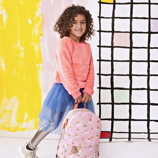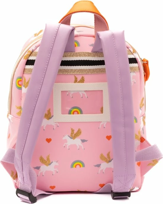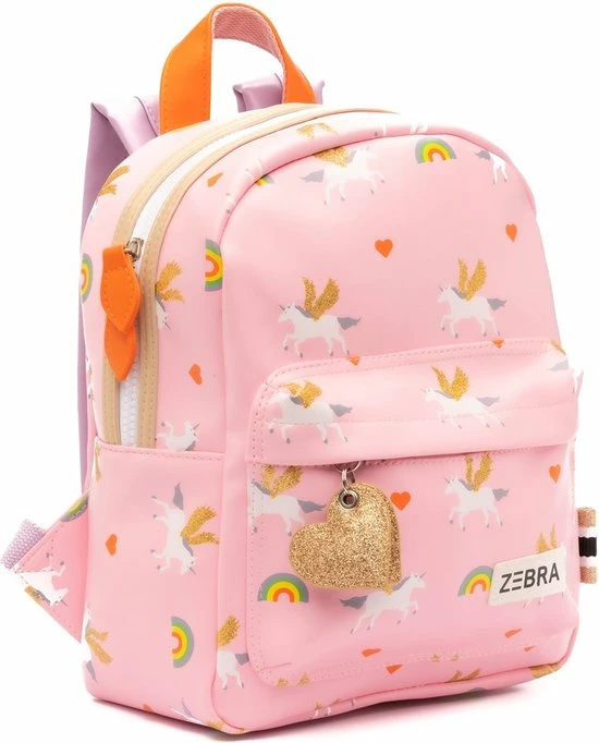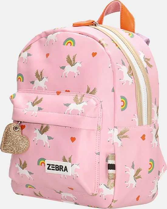 Kinderrugtasje van Zebra. De rugzak heeft een kleurrijke print in zachte kleuren. De tas is te sluiten door middel van een rits en bevat een handvat en verstelbare schouderbanden. Ook is de tas voorzien van een opbergvak aan de buitenkant en 2 drinkbekerhouders aan de binnenkant.