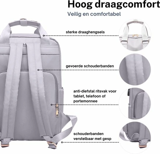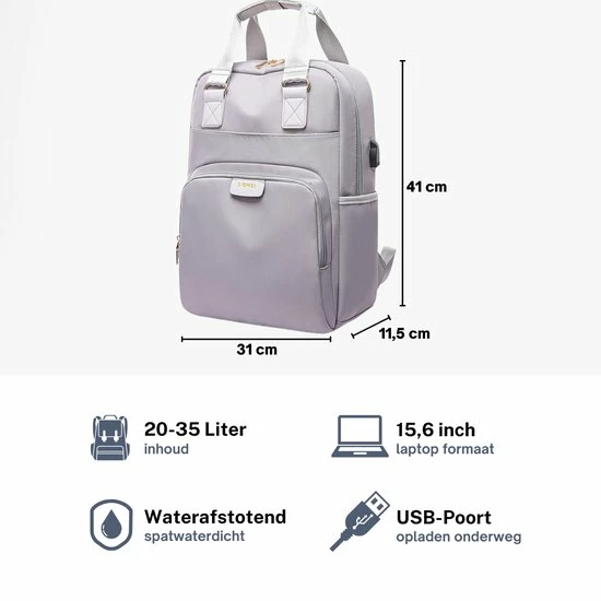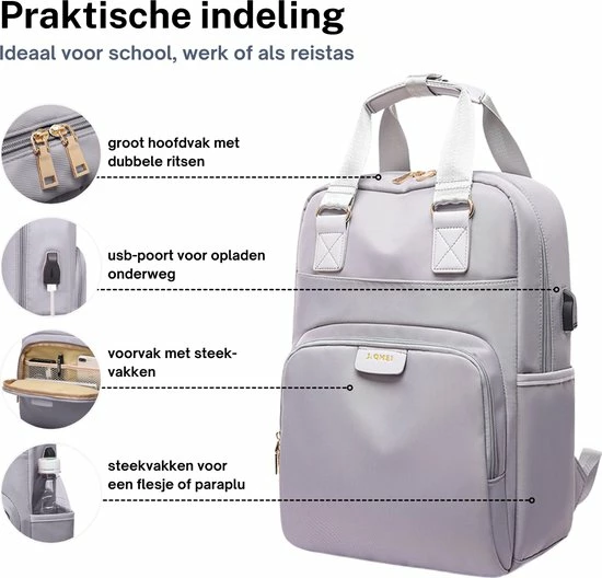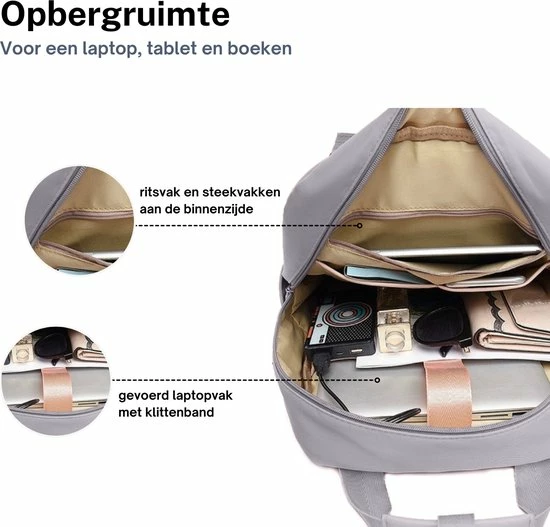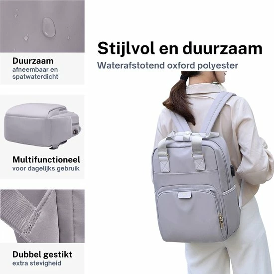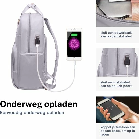 โDankzij de USB poort is opladen onderweg een eitje! Even een powerbank aansluiten (niet meegeleverd) en je komt nooit meer met een lege tablet, laptop of telefoon op je eindbestemming aan. De rugtas is gemaakt van duurzaam oxfort polyester โ Dit materiaal is sterk, waterafstotend en makkelijk schoon te houdenโ